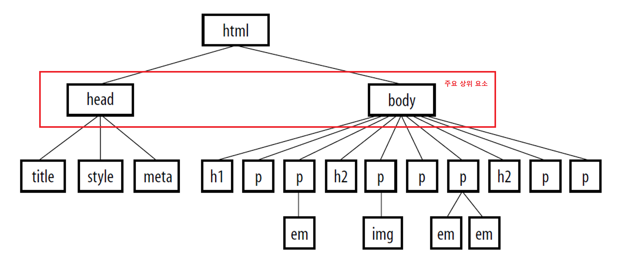 HTML 문서의 구성 요소들은 부모-자식 구조를 가집니다. 계층적인 관계를 나타내는 부모 요소는 다른 요소를 포함하는 상위 요소이고, 자식 요소는 부모 요소에 속한 하위 요소입니다. 이 구조를 사용하여 웹 페이지의 구조와 계층을 정의할 수 있습니다.