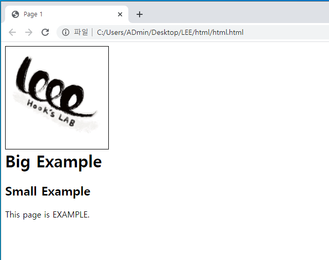 <h1> <img src="1.png" alt="photo"> <br> Big Example </h1>