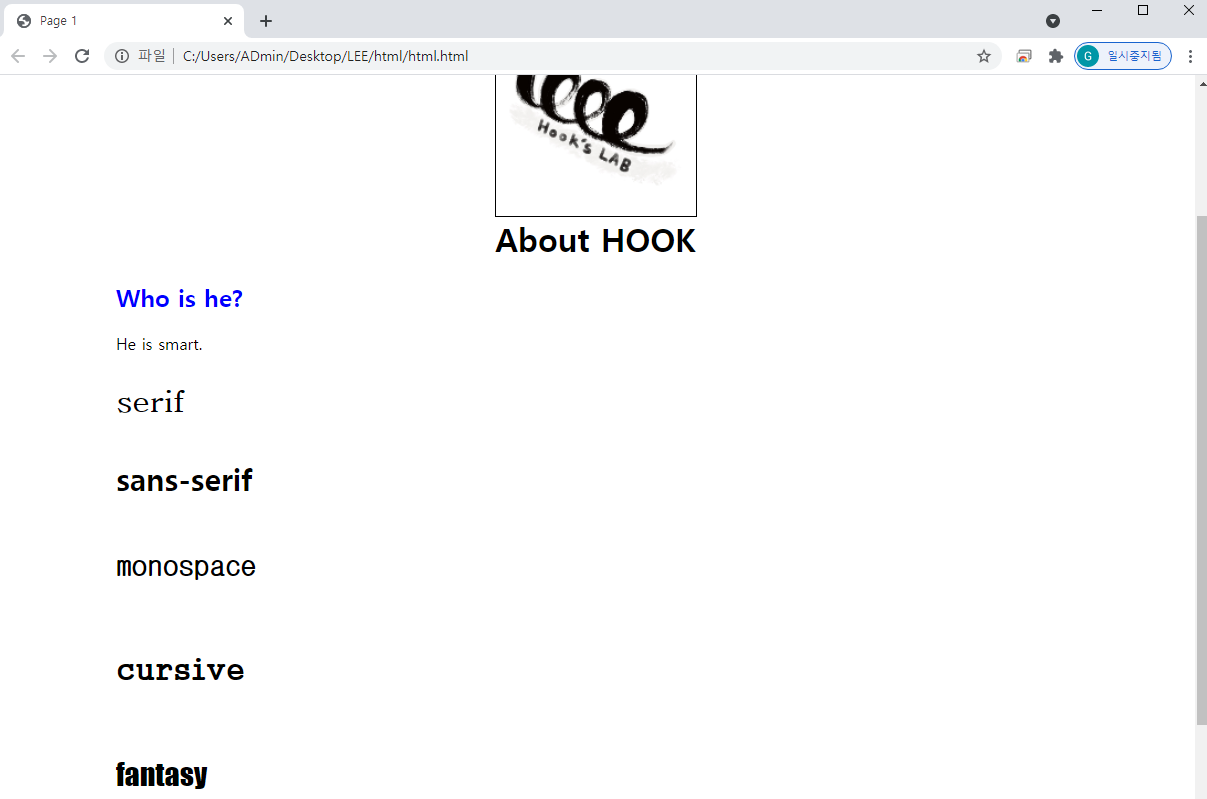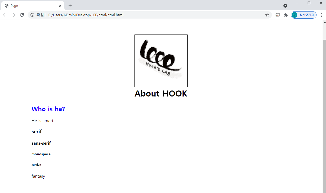 위와 같이 스타일을 지정하여 웹문서를 편집하면, 다음과 같이 좀 더 깔끔한 웹페이지가 완성됩니다.