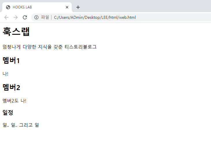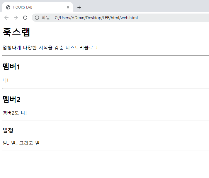 마지막으로 문단이나 제목을 구분하기 위한 hr 코드
