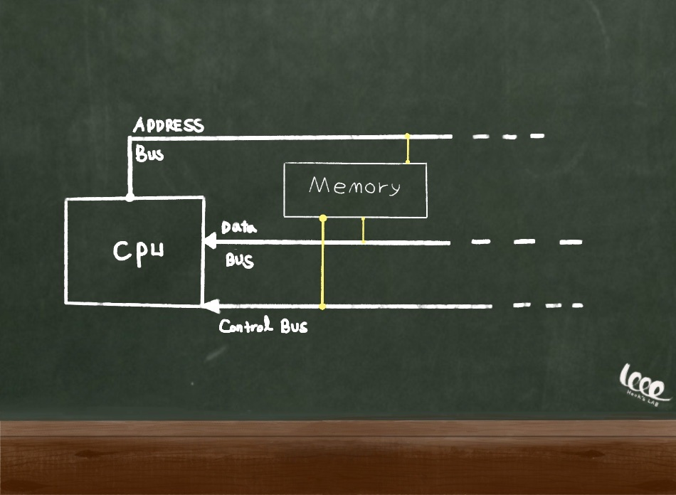 메모리는 CPU라 불리는 중앙 처리 장치와 주소 버스, 제어 버스, 그리고 데이터 버스를 통해서 연산장치와 메모리 간의 데이터 통신을 수행합니다.