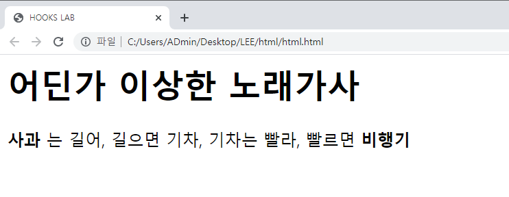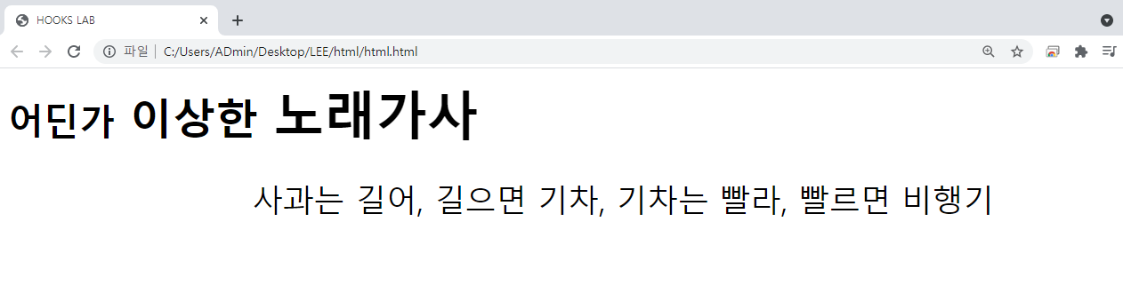 <h1> <small>어딘가</small> 이상한 <big>노래가사<big> </h1>