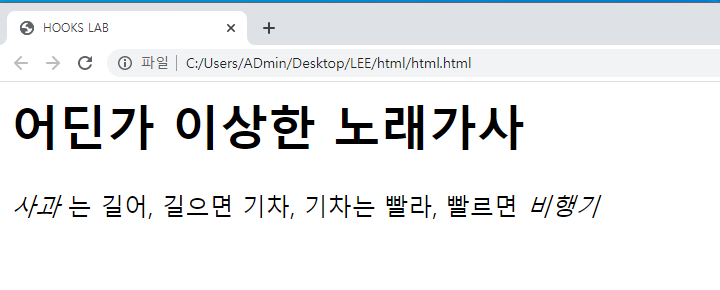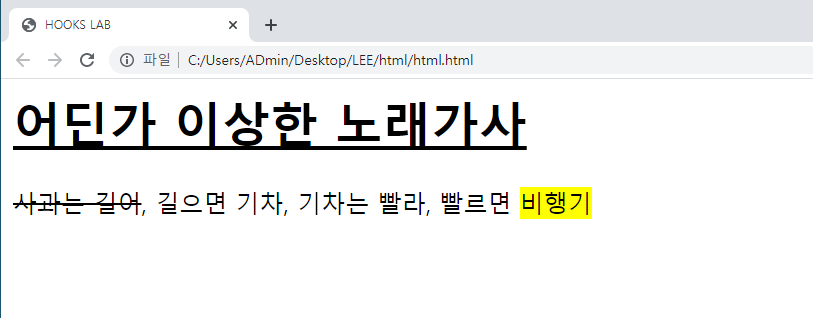 <h1> <u>어딘가 이상한 노래가사</u> </h1>