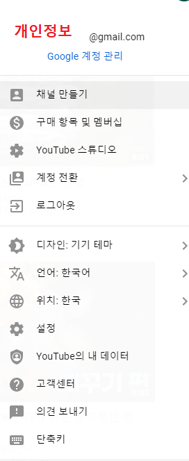 구글 아이디가 있다면, 다음의 순서를 따라 유튜브 채널을 개설합시다.