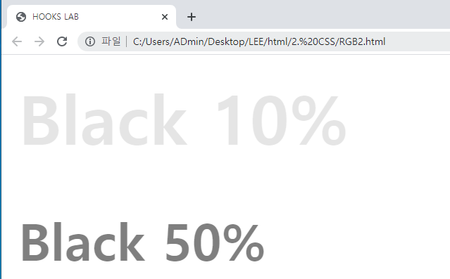 이렇게 정의된 h1을 사용하면, 위와 같이 50% 투명도를 가지는 글이 완성됩니다.