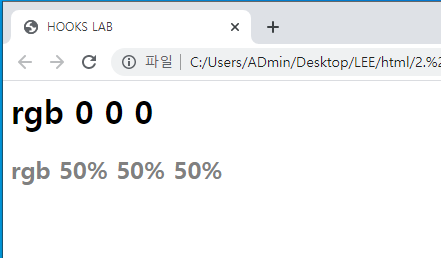 rgb코드는 스타일 코드 안에 넣어서 다음과 같은 예시 코드로 적용해봅시다.