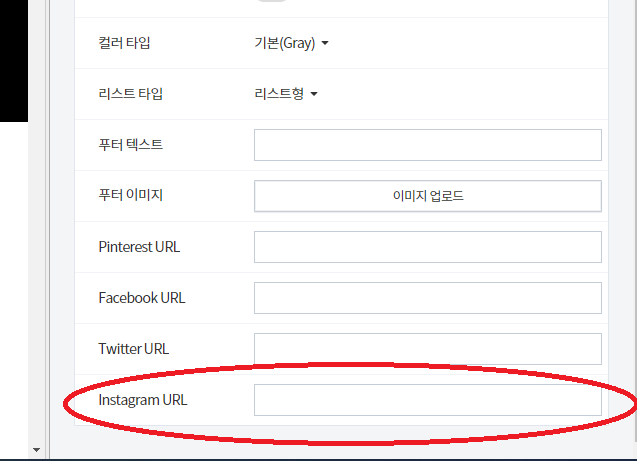 다음 스킨편집으로 들어가면, 오른쪽 제일 하단 측에 인스타그램 url 넣는 칸이 보이실 겁니다.