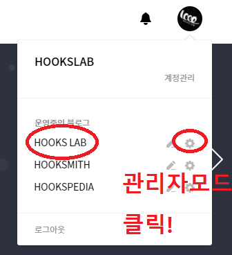 자 그런 다음 티스토리 블로그의 관리자 모드로 들어갑니다.