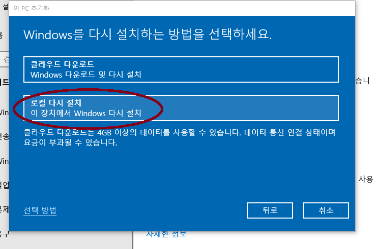 다음에는 로컬 다시 설치 눌러주세요.