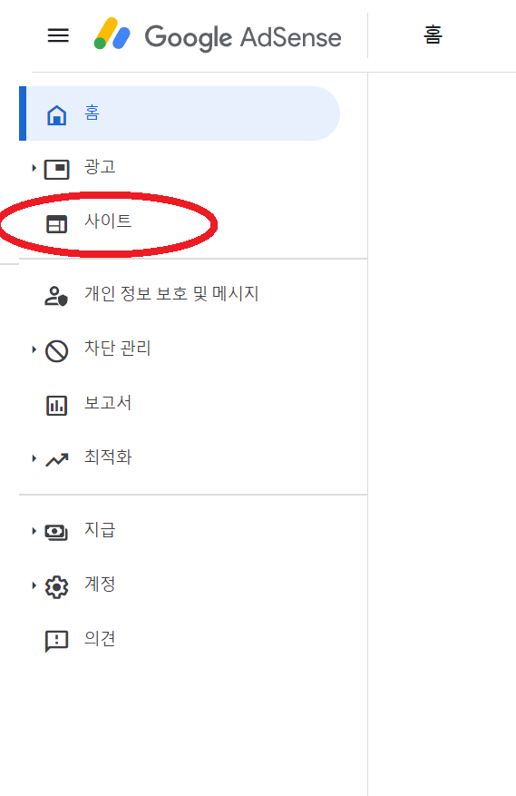 자, 애드센스 회원가입이 끝났으면, 이제 내가 광고할 사이트를 추가해줘야 돼요! 그러려면 먼저 애드센스 홈페이지에서 사이트 탭으로 접근합시다!