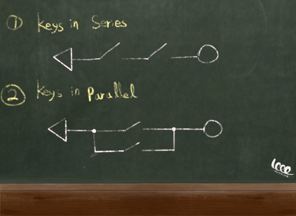 논리회로의 초기판이라고도 볼 수 있는 스위치의 병렬 회로와 직렬회로의 기호는 다음과 같습니다.