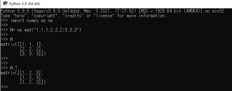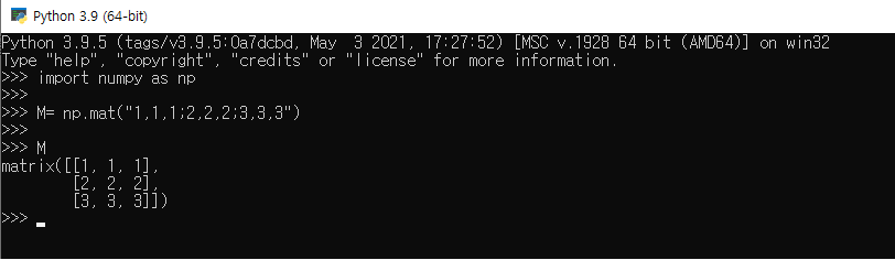M=np.mat("1,1,1; 2,2,2; 3,3,3 ")