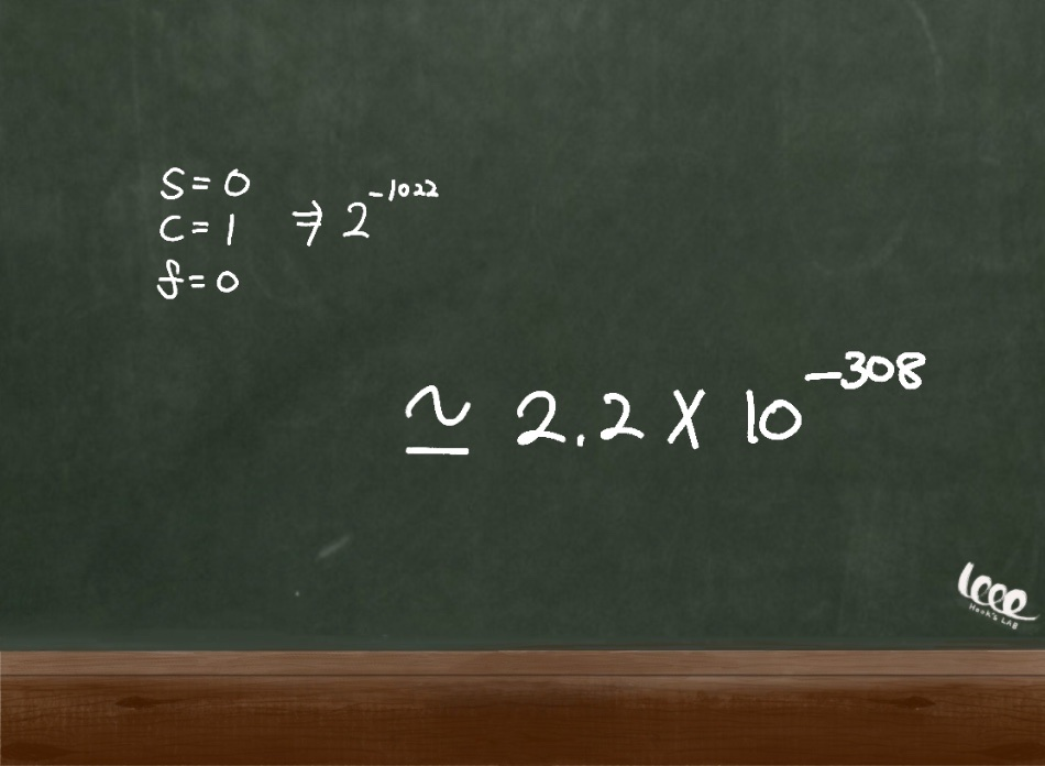 부동 소수가 양수에서 가장 작은 수가 될 수 있는 경우는 s, c 그리고 f 가 각각 0,1,0 일 때이다.